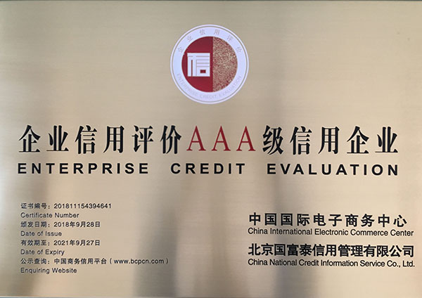 企業(yè)信用評級(jí)AAA級(jí)信用企業(yè)